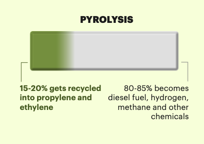 ProPublica did an indepth study to determine how much of the plastic that enters the pyrolysis system comes out as reusable material. It came up with 15-20%.