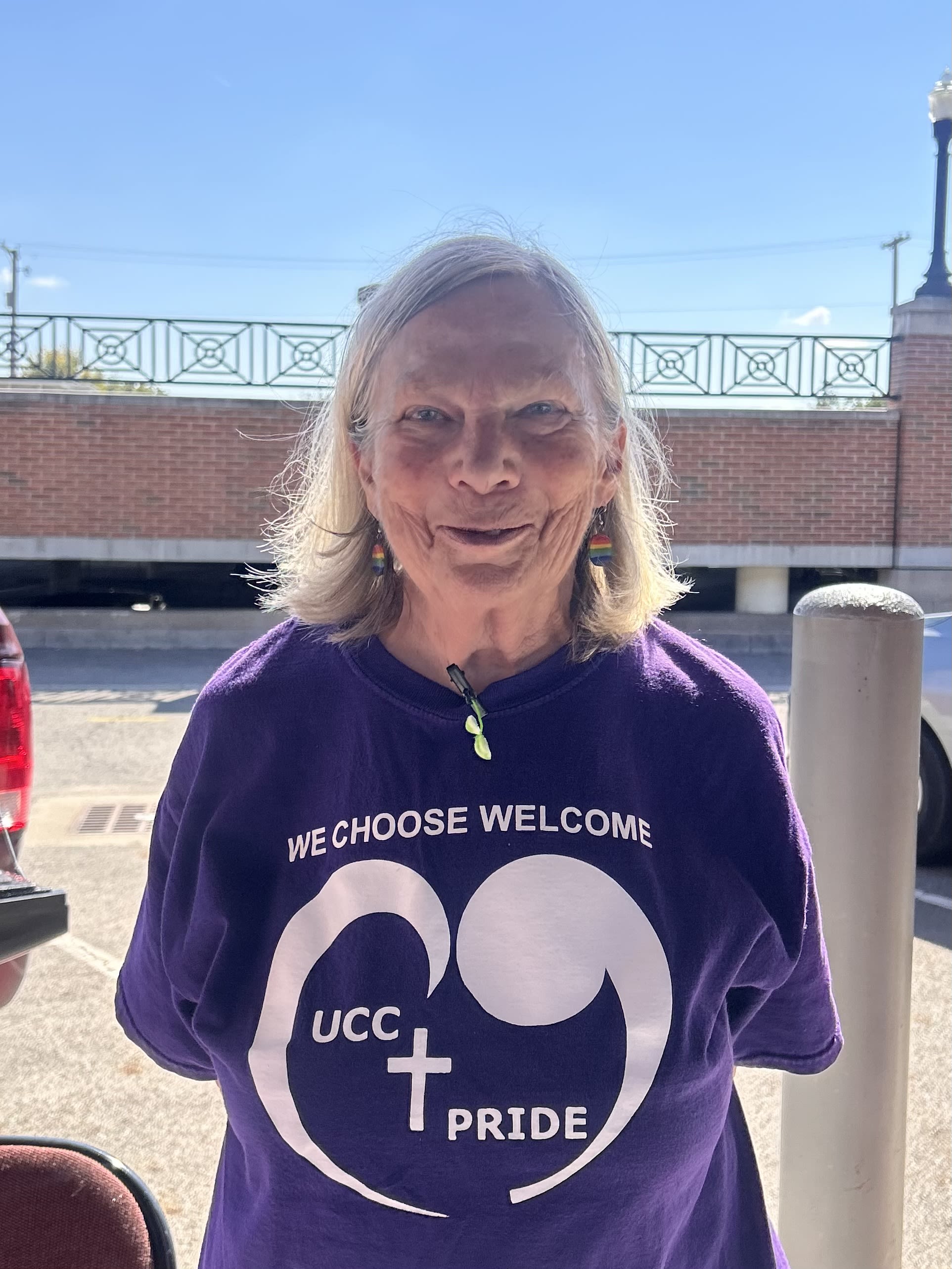 “We are the church that has the pride flag hanging from the door. I’m here just to let people know that there are churches that are welcoming and affirming that you can feel comfortable. That’s important for a lot of people. We come every year, hand out free stuff, and encourage people if they are looking for a church to come. I also just tell them to come in and look at the stained glass windows on Sunday morning, the sun comes in through one of the windows. It’s just beautiful, all the colors of the stained glass get reflected on the floor. It’s a place where you can come and feel that you are loved. That’s hard nowadays.”