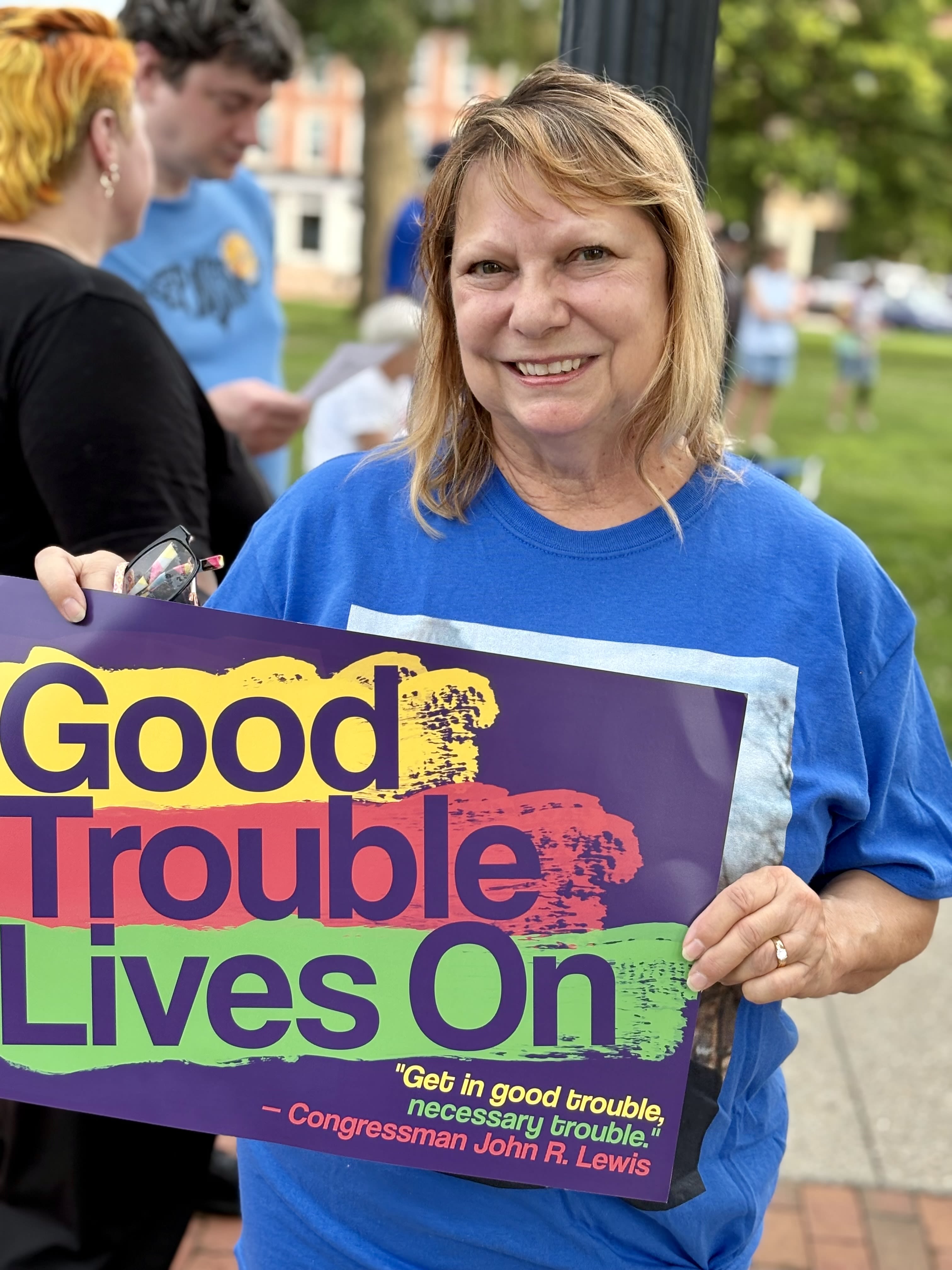 “I went to my first protest when I was 12 years old. I am 69, so I’ve been doing this a while. I grew up on the East Coast and lived the civil rights movement in the ‘60s, so ‘Good Trouble’ does mean a lot. I feel like we’re taking too many steps backwards.”