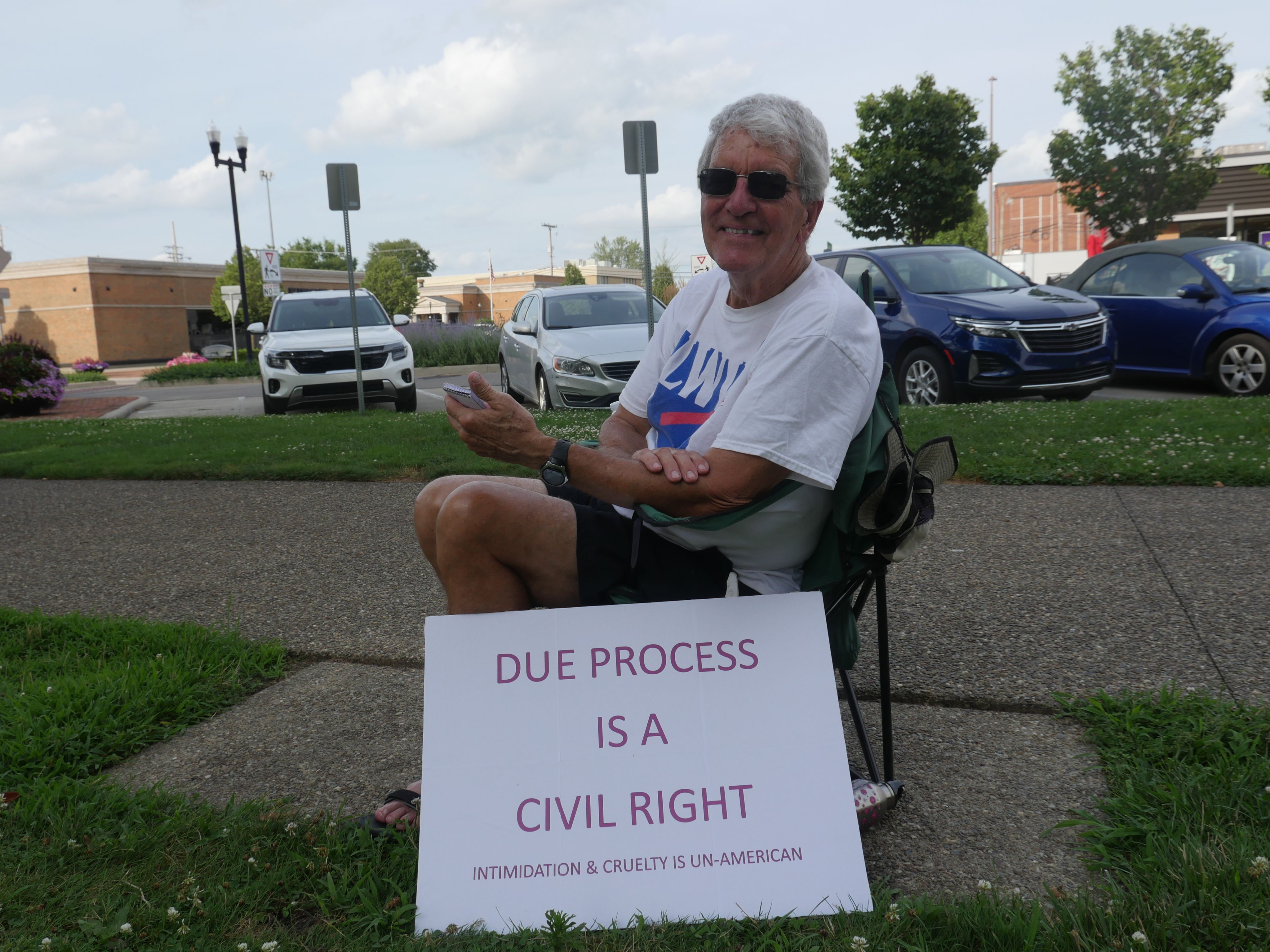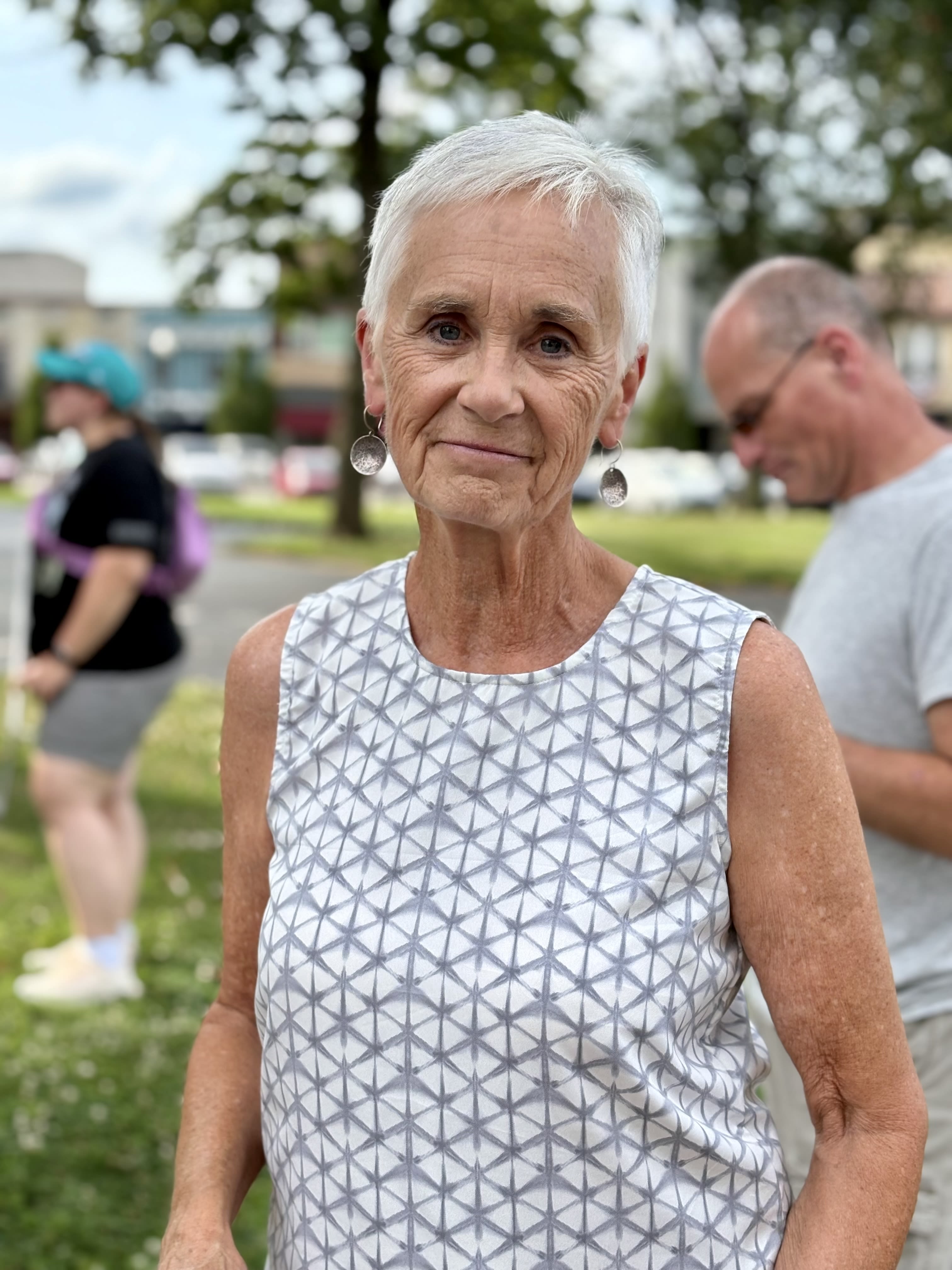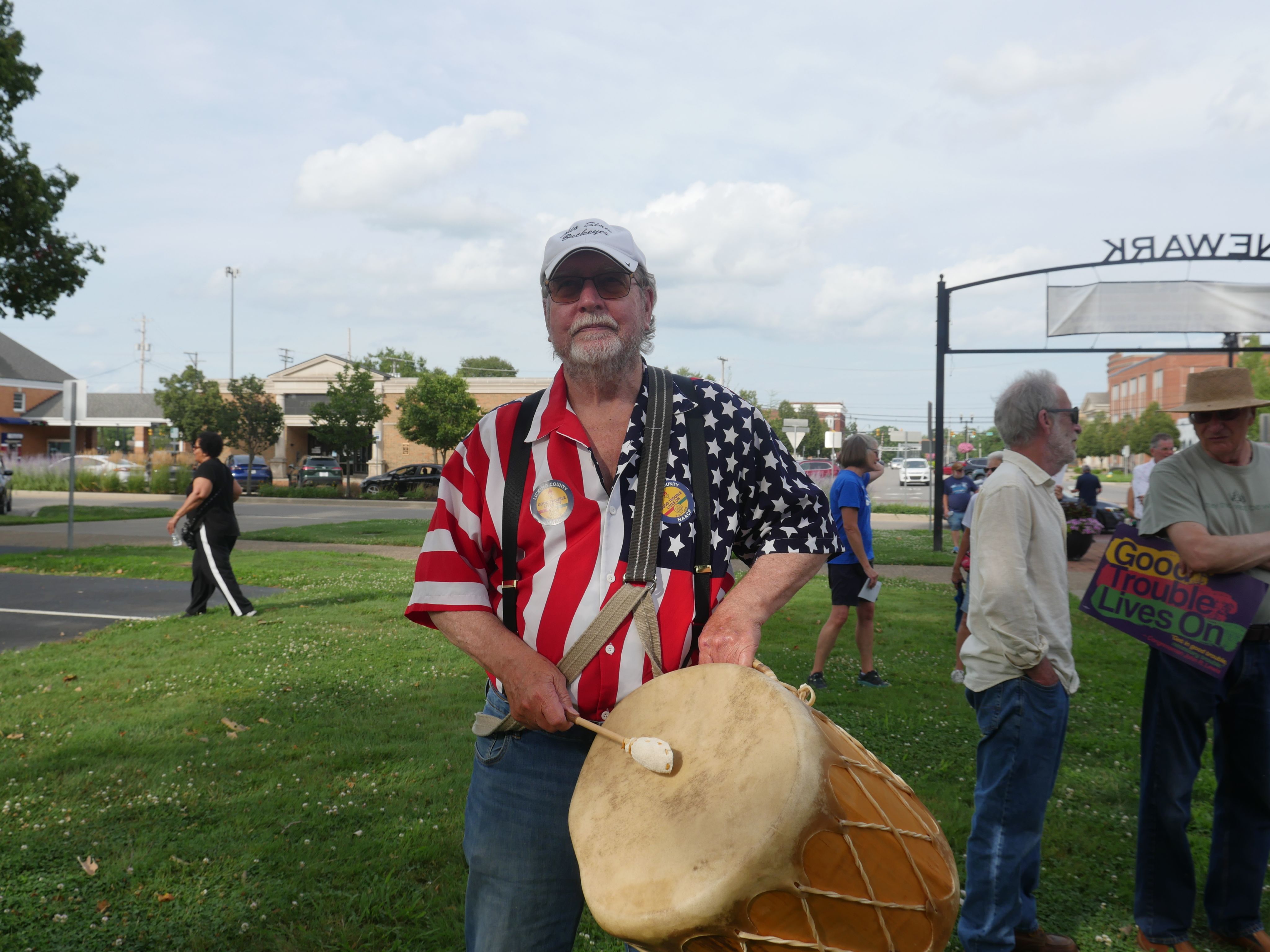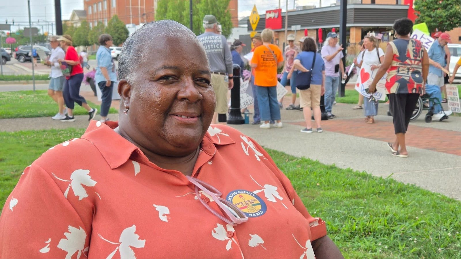 Diane Watson stood up from her lawn chair. She took a couple steps forward, bowed her head to hear better. She was listening to the Rev. Timothy Carpenter speak to a crowd at the Good Trouble rally at the Licking County Courthouse.