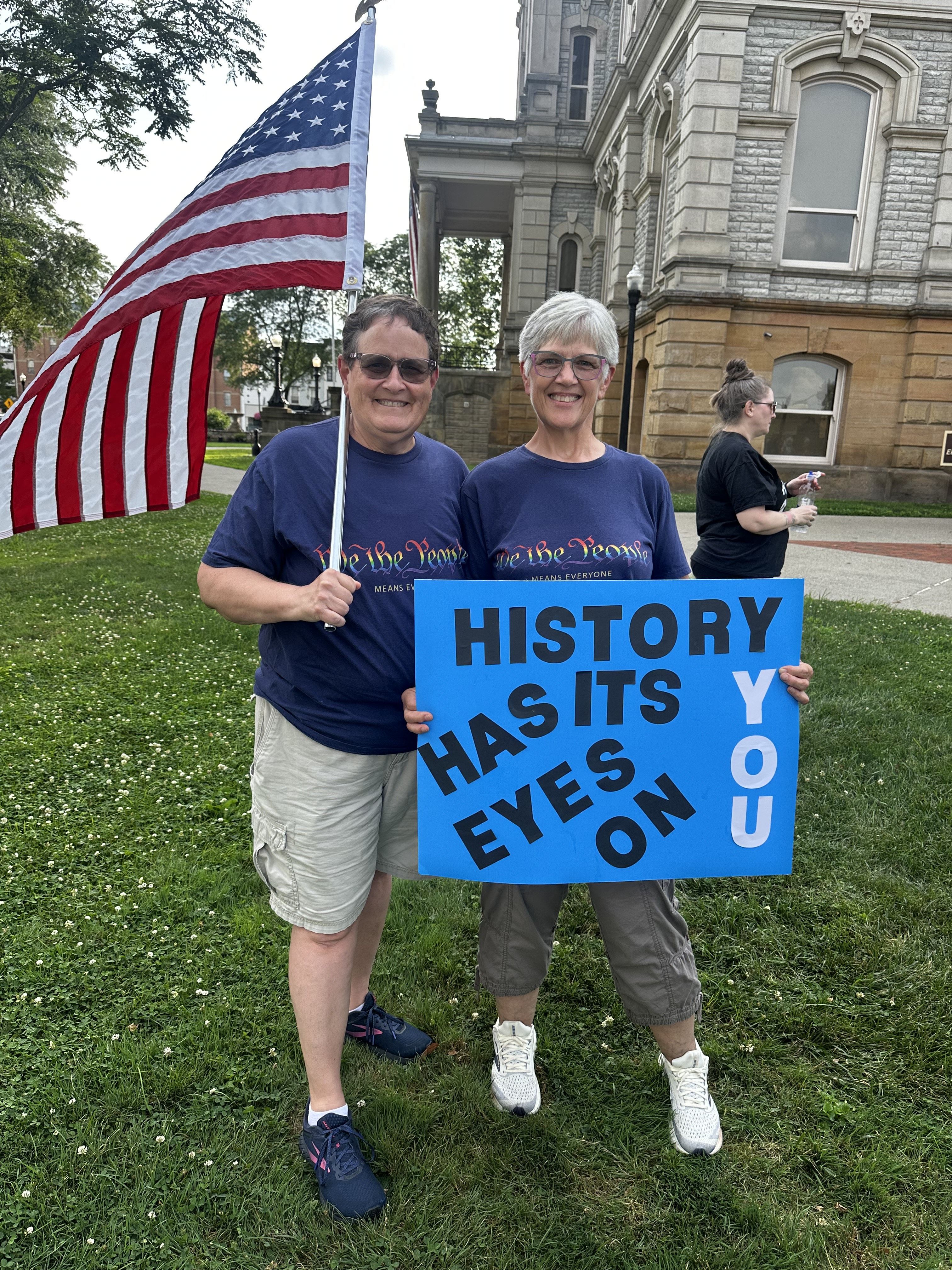 “There is so much wrong, there isn't a sign big enough to fit it all. From human rights to voting rights, to constitutional rights, to our rights as a lesbian couple. So, we come out to fight for everyone's rights. They are coming to the schools. I am a retired teacher, and it hits too close to home,” Wightman said.