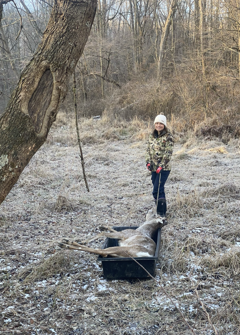 “During that period of time, we were collecting roadkill deer and taking them into the woods. We would cruise this road and find a deer and pull over,” she says smiling. “I could just do field work all day.”
