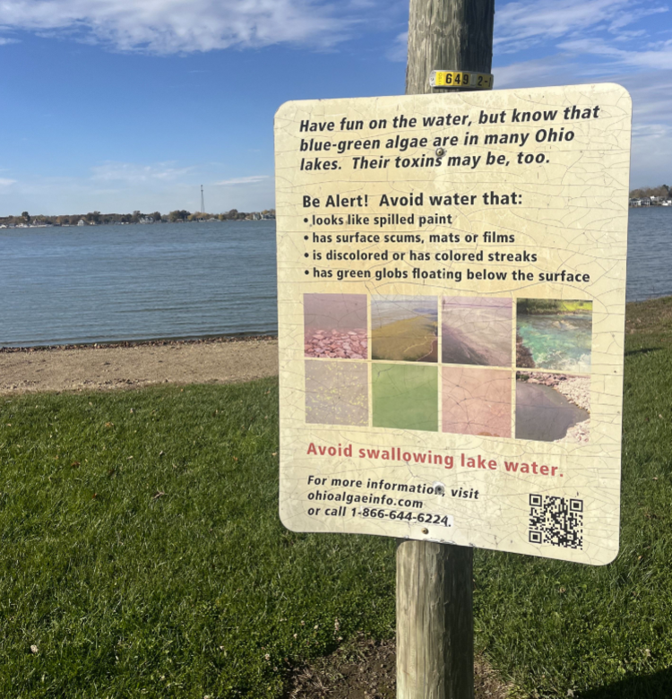 Warning sign on the beach of Buckeye Lake. Credit: Oliver Quinn.