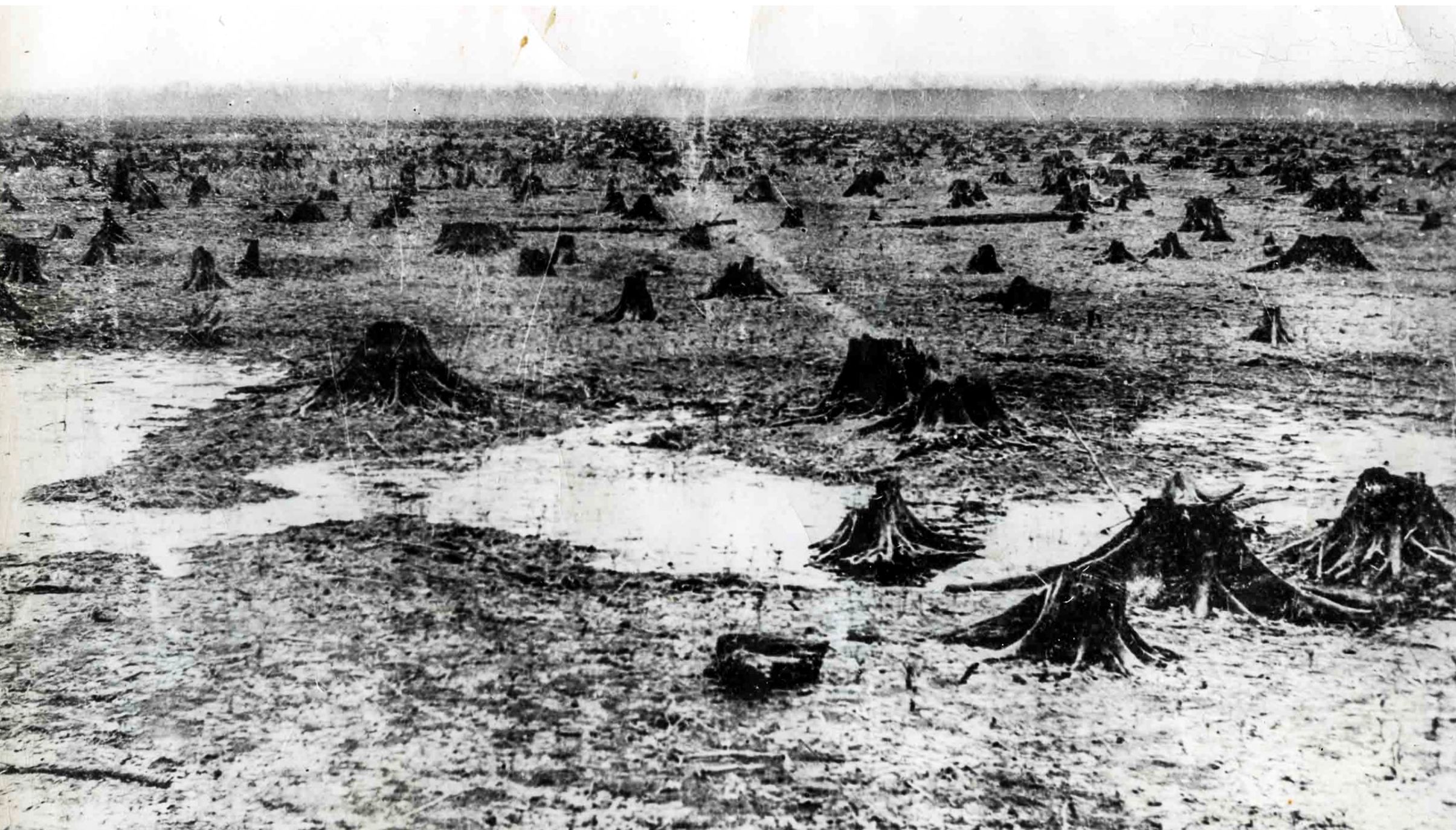 Circa-1890 photo of the destruction of the Great Black Swamp in northeast Ohio. Bloody Run Swamp was drained and cut earlier. Credit: Center for Archival Collections, Bowling Green State University.